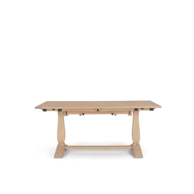 Harrogate has a relaxed farmhouse-style design, with a solid oak tabletop supported over shapely pedestal supports. This extending version comfortably seats six when it’s closed, but it’ll fit up to 10 when family and friends visit thanks to the two extension leaves and the open nature of the base.