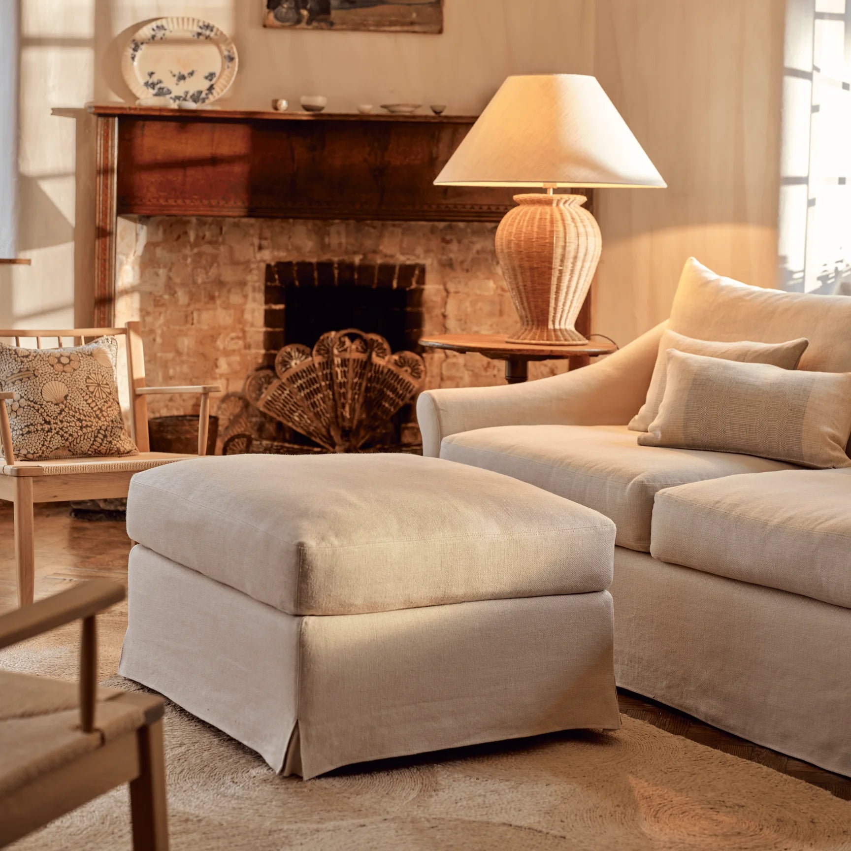 The Neptune Long Island Footstool completes the collection with the same relaxed coastal character and removable loose linen cover.